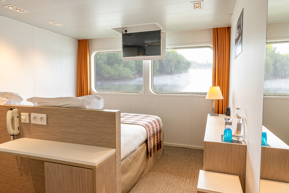 Die öffentlichen Bereiche zeichnen sich durch helles und einladendes Ambiente mit feiner Farbgebung aus. Die großzügige Fensterflächen mit viel Licht bieten den perfekten Blick auf die Flusslandschaften beim Kreuzen.